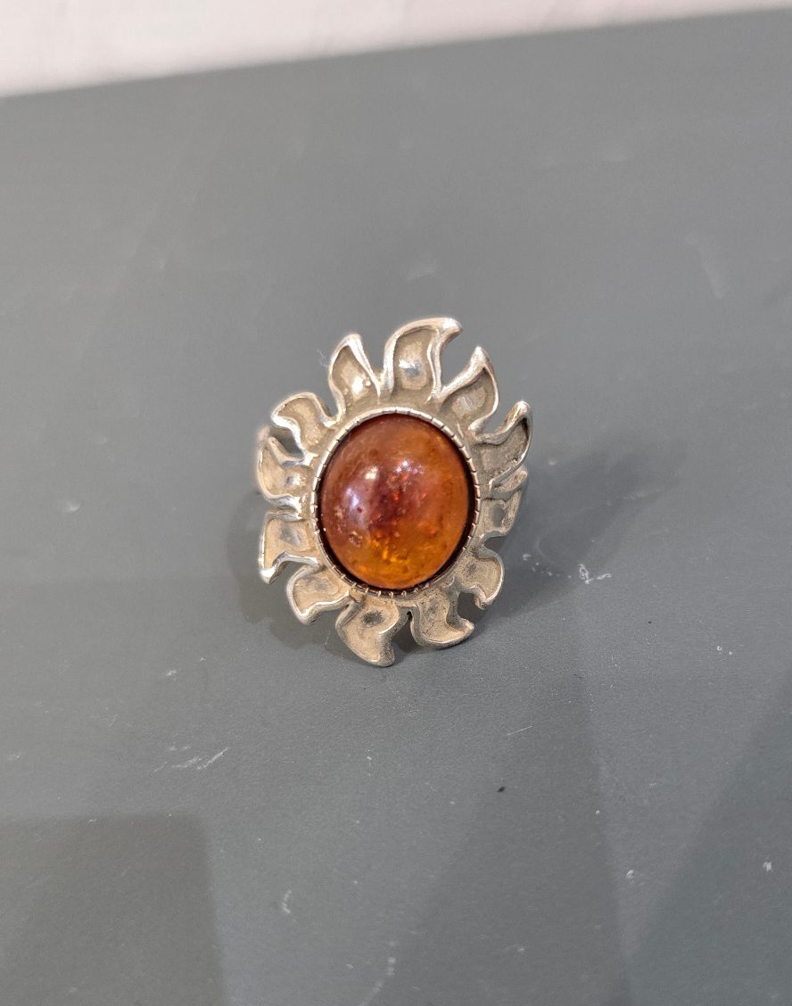 Schöner Silberring aus 925 Sterling-Silber mit Bernstein